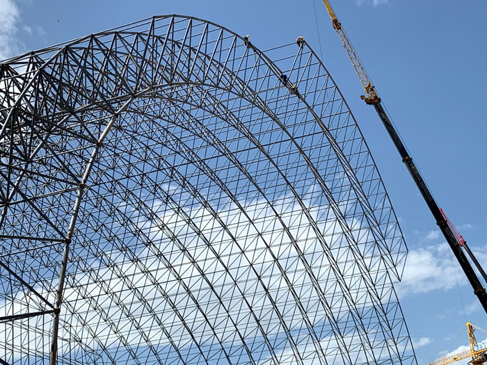 (2)网架加工前应对现场尺寸进行复测,确认无误后方可进行加工、安装;网架制作、运输、安装应遵守《空间网格结构技术规程》JGJ7-2010、《钢网架石景山螺栓球节点》JG/T 10-2009、《钢网架石景山螺栓球节点用高强度螺栓》 GB/T 16939-2016、《石景山钢结构石景山工程石景山施工规范》 GB50755-2012、《石景山钢结构石景山工程施工质量验收标准》 GB50205-2020。